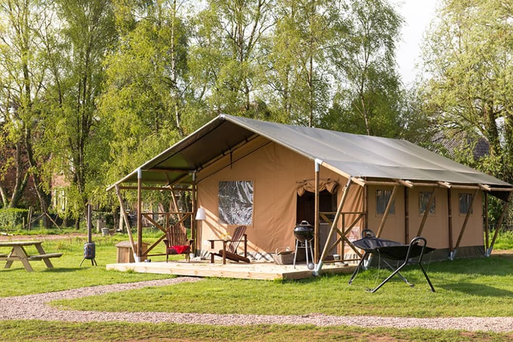 Geen gesjouw met kampeerspullen of lekkende luchtbedden. Bij FarmCamps staat alles al voor je klaar. Je slaapt in een safaritent, lodgetent of barntent met échte bedden, een goed uitgeruste keuken en een heerlijk terras. Sommige tenten hebben zelfs een bad met uitzicht op de weilanden.