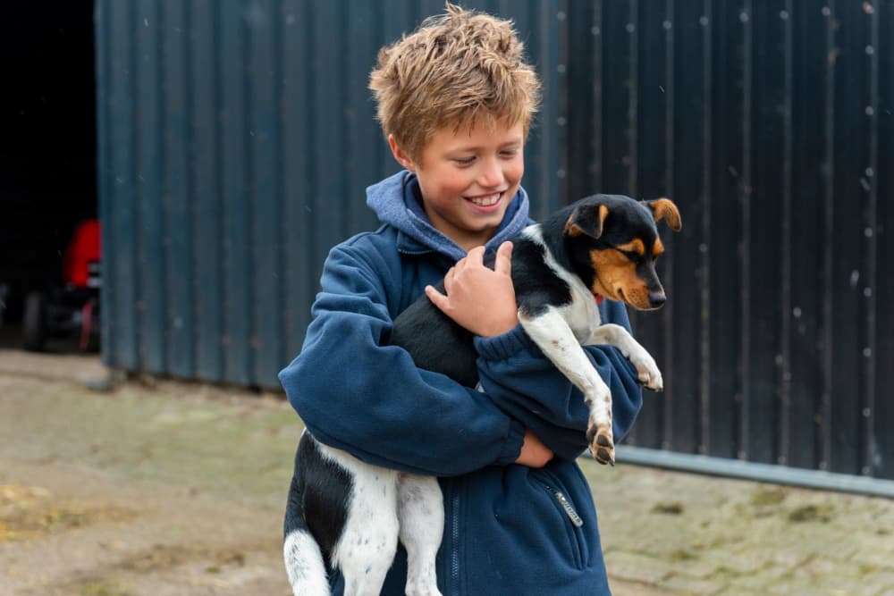 De beste basis leg je eigenlijk al als je hond nog een pup is. In deze periode staat hij nog open voor alles en leert hij wat 'normaal' is in de wereld. Als je hem nu al laat wennen aan het geluid van loeiende koeien of kakelende kippen, kijkt hij daar later nauwelijks meer van op. Zelfs een vriendelijke gezinshond zoals een mini labradoodle heeft instincten die plotseling naar boven kunnen komen als er een eend wegrent. Laat hem daarom altijd eerst rustig kijken vanaf een veilige afstand, zonder dat hij direct contact hoeft te maken.